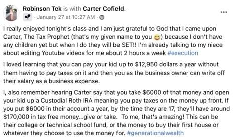 Carter went from a homeless kid on Chicago's south-side to a 6-figure entrepreneur, speaker, & public figure. After receiving his master's in accounting, Cofield earned his CPA license. He worked at Big Four firm KPMG and Northern Trust Asset Management before going out on his own. At this time, saw a need in the community and no one was willing to take the chance to solve the problem.
